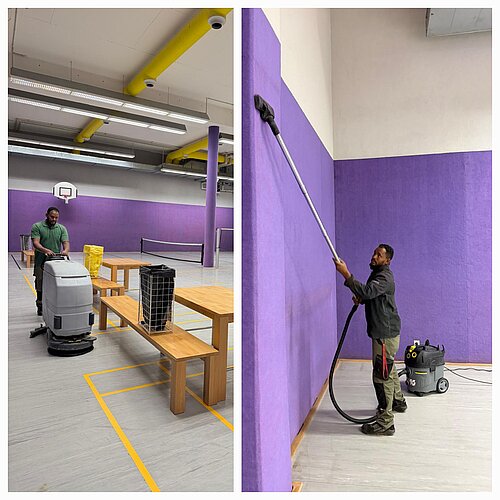 Hallo zusammen! Diese Woche ist wieder unsere regelmäßige Pflege für die Badminton- und Pickleballfelder angesagt. Mit der Putzmaschine sorgen wir für saubere Spielflächen, und die Wände werden abgesaugt. So können sich alle Sportler rundum wohlfühlen. Ein großes Dankeschön an Beletse, der fleißig am Werk ist!